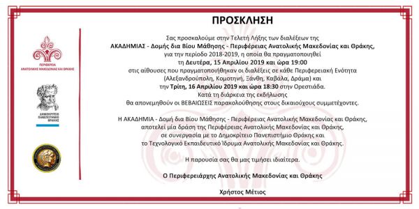 Πρόσκληση στην Τελετή Λήξης της ΑΚΑΔΗΜΙΑΣ
